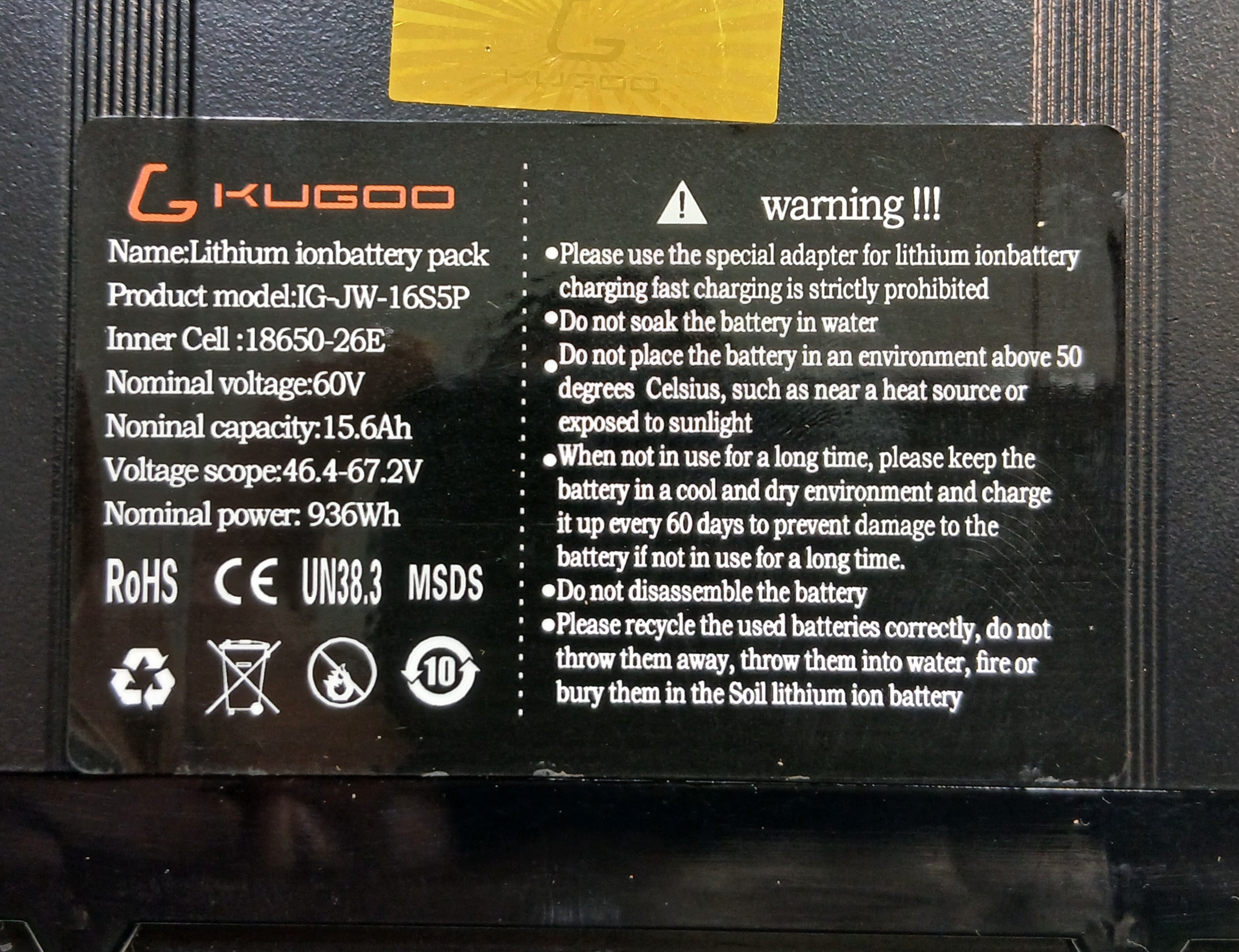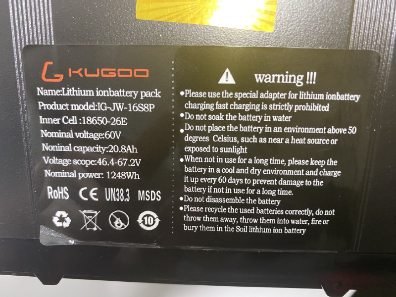 Аккумулятор 60v20.8ah Электровелосипед KUGOO V3 PRО