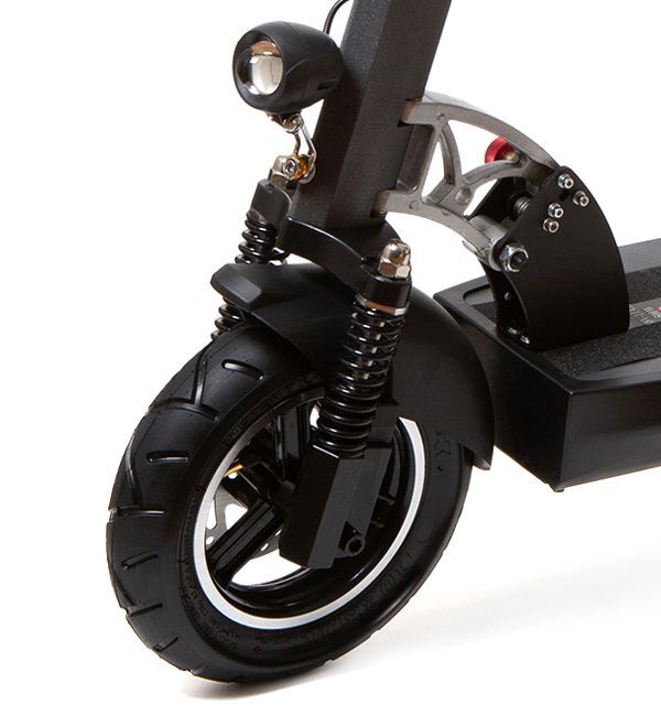 Большие 10-дюймовые (254 мм) пневматические шины со сликовыми покрышками (без грунтозацепов) с водоотводящими канавками. Они обеспечивают очень комфортный накат и способствуют стабильной управляемости. Такие колеса вкупе с пружинной подвеской позволяют уверенно передвигаться не только по ровному асфальту, но и по грунтовым дорогам и лесным тропинкам.