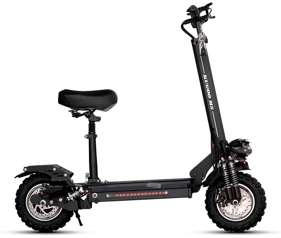 В комплекте с электрическим самокатом Kugoo M5 21ah v2 (Kugo M5, Koogo M5) идёт съёмное сиденье. Широкое и мягкое сиденье с подпружиненным подседельным штырем обеспечивает комфортную и удобную посадку. Также имеется регулировка по высоте.
