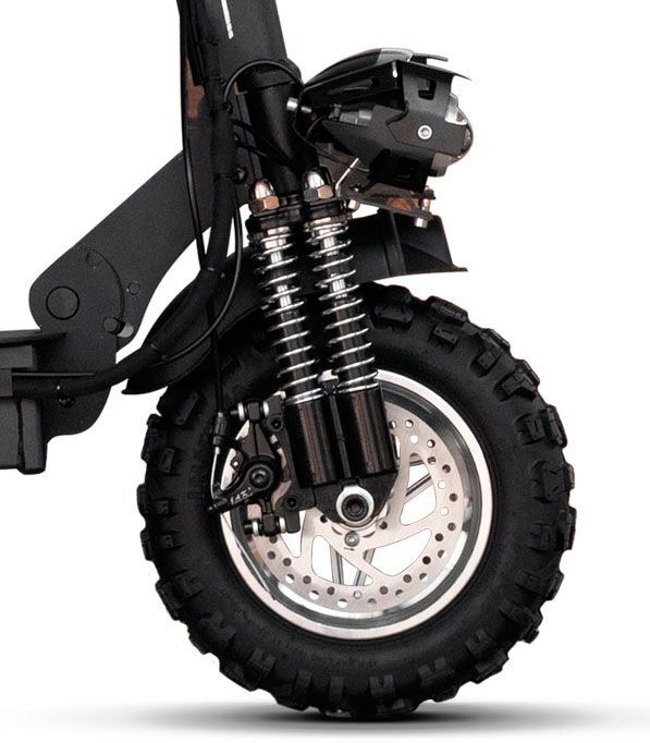 На переднем и заднем колесе установлены дисковые тормоза (впервые в модельном ряду Kugoo) . Гидравлические тормоза более эффективны чем механические и гораздо реже нуждаются в обслуживании. А еще есть электронный тормоз с системой рекуперации (данная система подзаряжает батарею во время торможения).