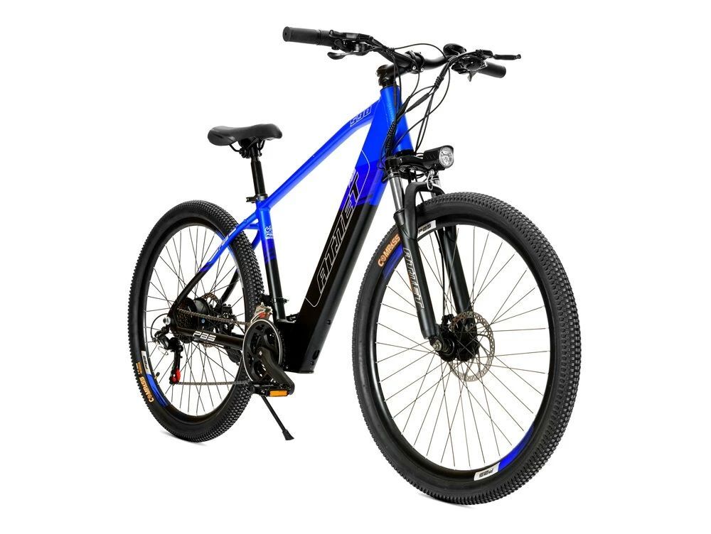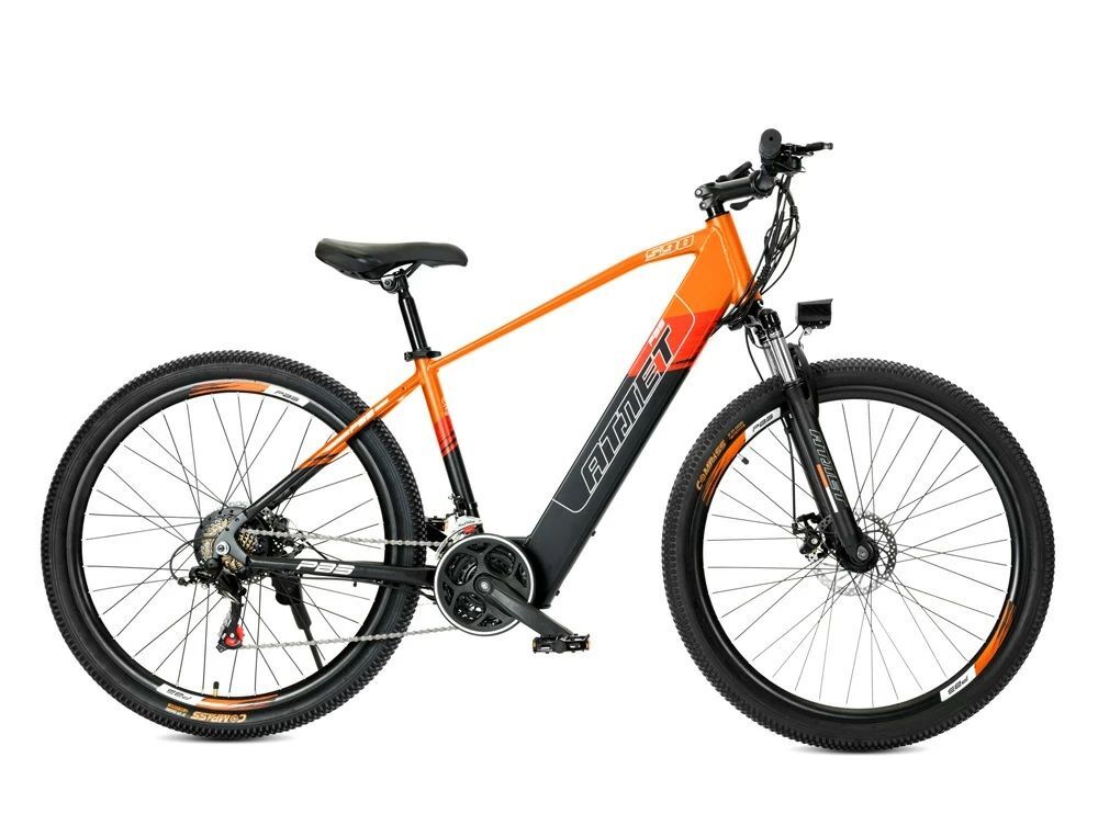 Горный электровелосипед РВЗ Атлет – отличное решение для поездок по городу и пересеченной местности. Собран на классической горной раме хардтейл с интегрированным аккумулятором, который легко снимается для подзарядки. Рама изготовлена из легкого и прочного алюминиевого сплава, благодаря чему велосипед обладает высокой грузоподъемностью при небольшом весе. Оборудован колесами диаметром 27,5 дюймов и надежными дисковыми механическими тормозами.
