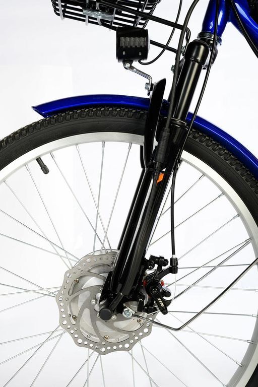 - Вилка амортизационная, специально разработанная, с ней комфортно ездить не только по асфальту, но и по бездорожью (грунтовые дороги, трава, гравийное покрытие, песок), она обеспечивает точное управление на неровной дороге, благодаря работе амортизационной вилки переднее колесо почти всегда остается в контакте с дорожным покрытием, это повышает безопасность движения.