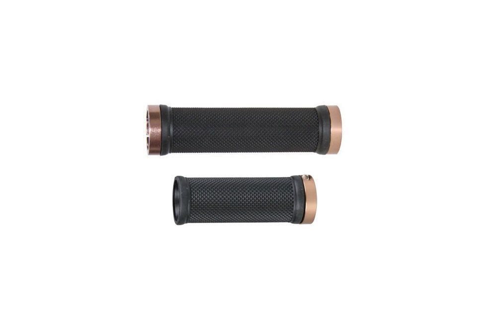 Грипсы TRIX, резиновые, 130мм+95мм, для ревошифта, алюминиевые фиксаторы на руль черные - 3шт., с заглушками руля, черные