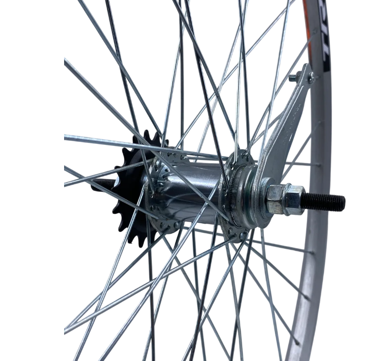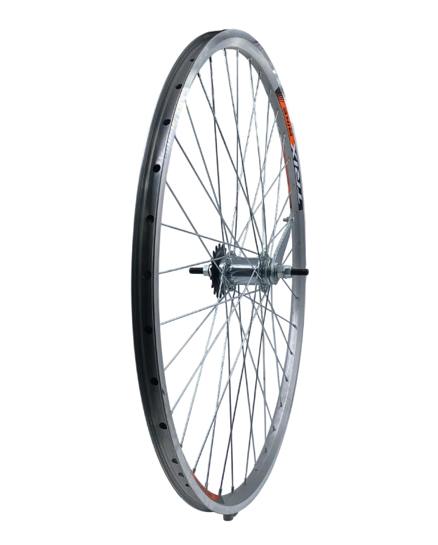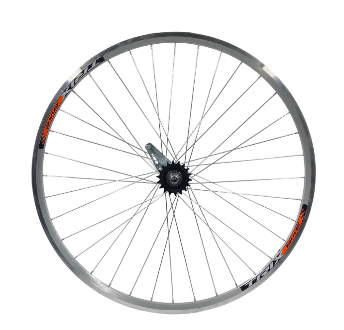 Колесо заднее 28" TRIX ножной тормоз 1 ск./обод двойной алюм.серебро CNC A/V 19.4x21.4/втулка серебр.звезда 18T