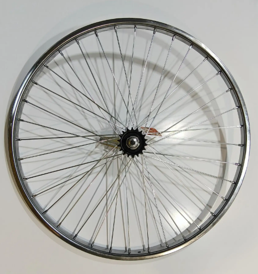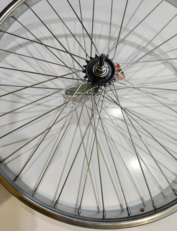 Колесо заднее 28" TRIX усиленное, ножной тормоз 1 ск./обод один.сталь хром A/V 21х15.5/втулка серебр.звезда 18T/спицы 3 мм