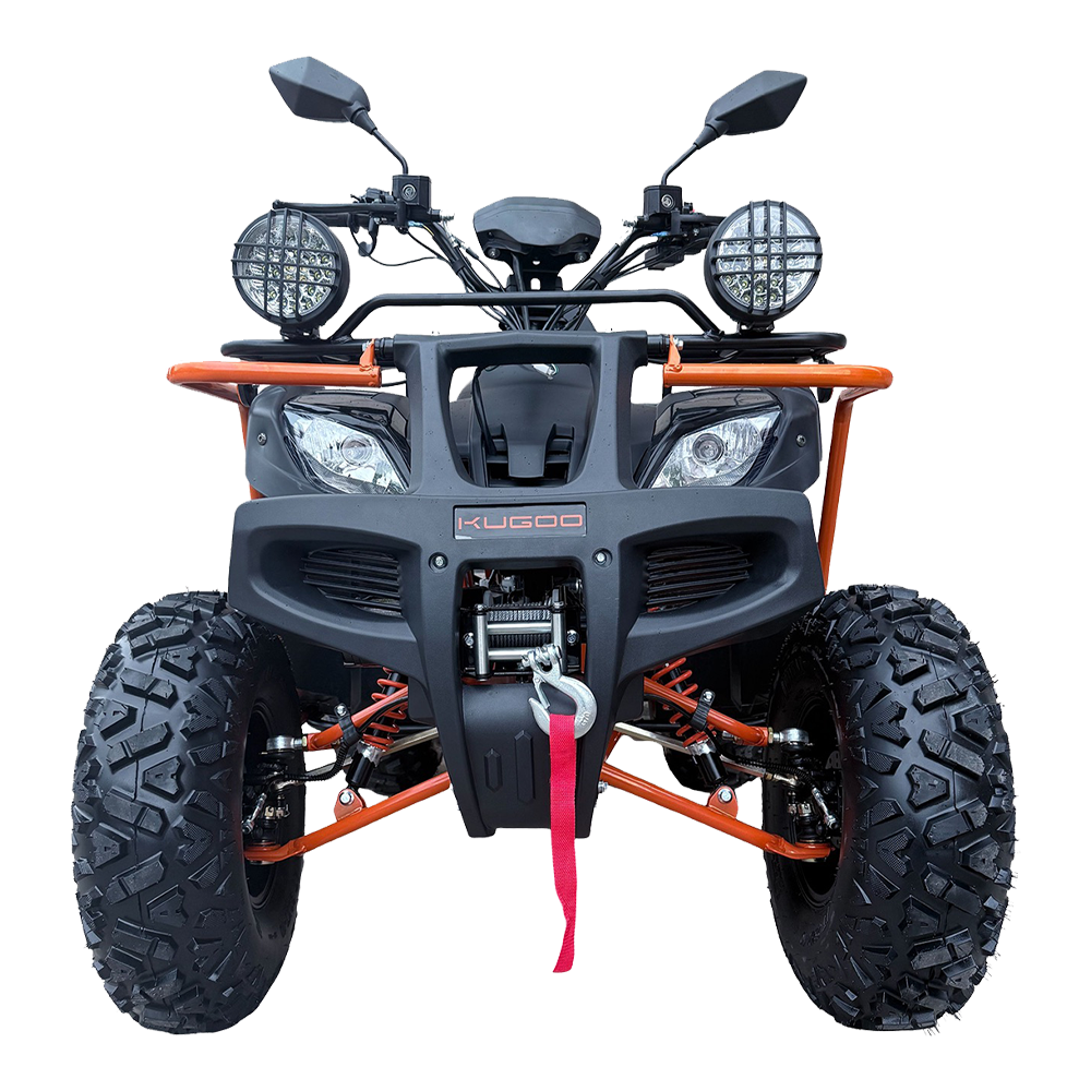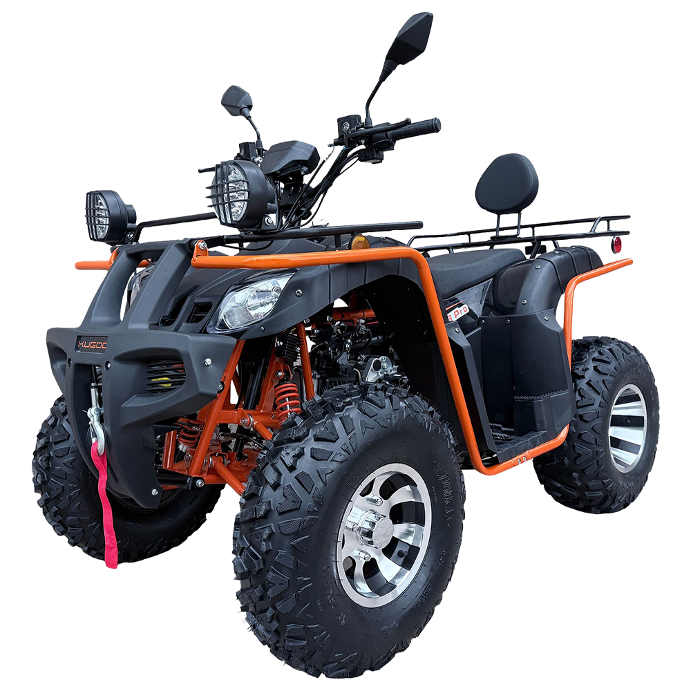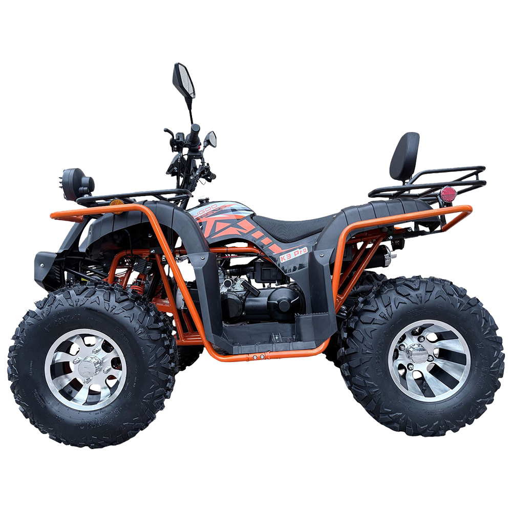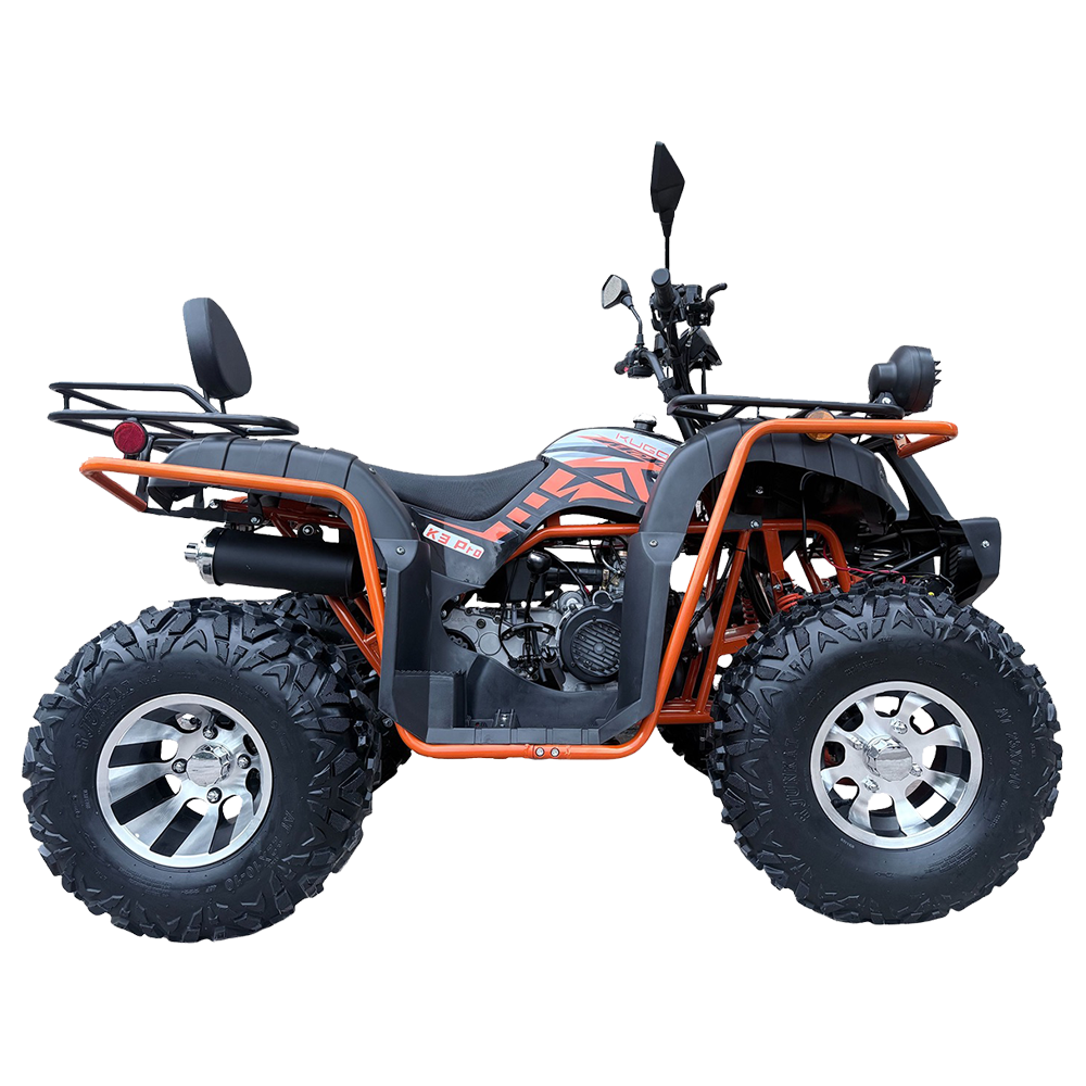 Квадроцикл KUGOO K3 PRO предназначен для городского и поселкового передвижения и предлагает своему пользователю практичное решение перевозка райдера вместе с пассажиром. Квадроцикл KUGOO K3 PRO это мощный и универсальный транспорт, идеально подходящий для активного отдыха и приключений. KUGOO K3 PRO сочетает в себе динамику, высокую производительность и надежность, что делает его прекрасным решением для ценителей экстремальных поездок. С бензиновым двигателем объемом 200 кубических см и мощностью 12 кВт квадроцикл достигает максимальную скорости до 65 км/ч. Это позволяет легко преодолевать практически любые препятствия и наслаждаться динамикой на дорогах. Квадроцикл KUGOO K3 PRO оснащен бесступенчатой трансмиссией CVT, что обеспечивает плавное и комфортное управление. Минимальный радиус поворота составляет 300 см, что позволяет маневрировать даже в ограниченных пространствах. Крутящий момент в 22 Нм обеспечивает отличную тягу и ускорение, что особенно важно при движении по сложным маршрутам. Эта характеристика делает квадроцикл более управляемым и отзывчивым.