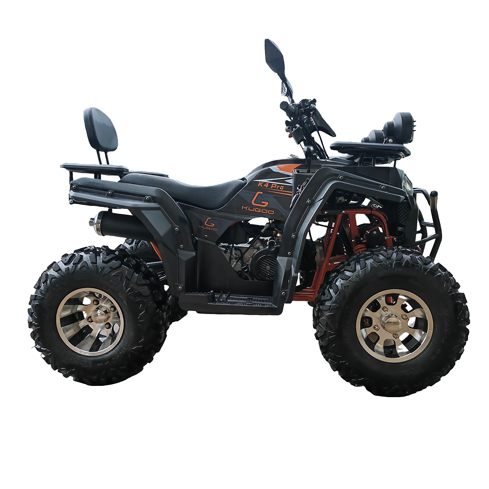 Квадроцикл KUGOO K4 PRO предназначен для городского и поселкового передвижения и предлагает своему пользователю практичное решение перевозка райдера вместе с пассажиром. Квадроцикл KUGOO K4 PRO это мощный и универсальный транспорт, идеально подходящий для активного отдыха и приключений. KUGOO К4 PRO сочетает в себе динамику, высокую производительность и надежность, что делает его прекрасным решением для ценителей экстремальных поездок. С бензиновым двигателем объемом 200 кубических см и мощностью 16 л.c квадроцикл достигает максимальную скорости до 65 км/ч. Это позволяет легко преодолевать практически любые препятствия и наслаждаться динамикой на дорогах. Квадроцикл KUGOO К4 PRO оснащен бесступенчатой трансмиссией CVT, что обеспечивает плавное и комфортное управление.
