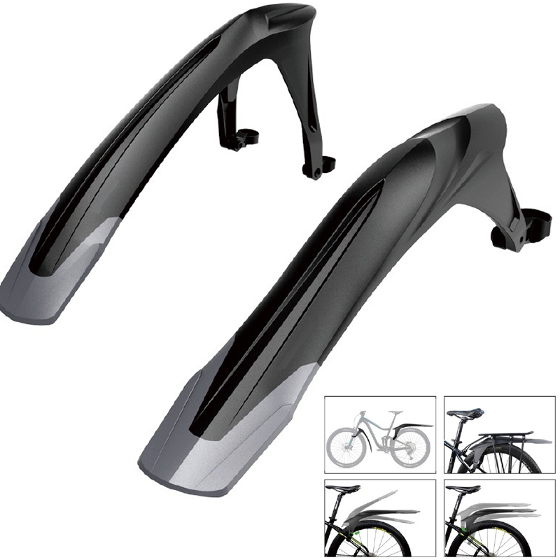 Крылья EVOLUTION MTB 24-29", комплект передне/заднее, крепеж: переднее двусоставное на штаны вилки и в шток вилки, заднее на верхние перья рамы; для покрышки max 2.5", пластиковые, серо-черные
