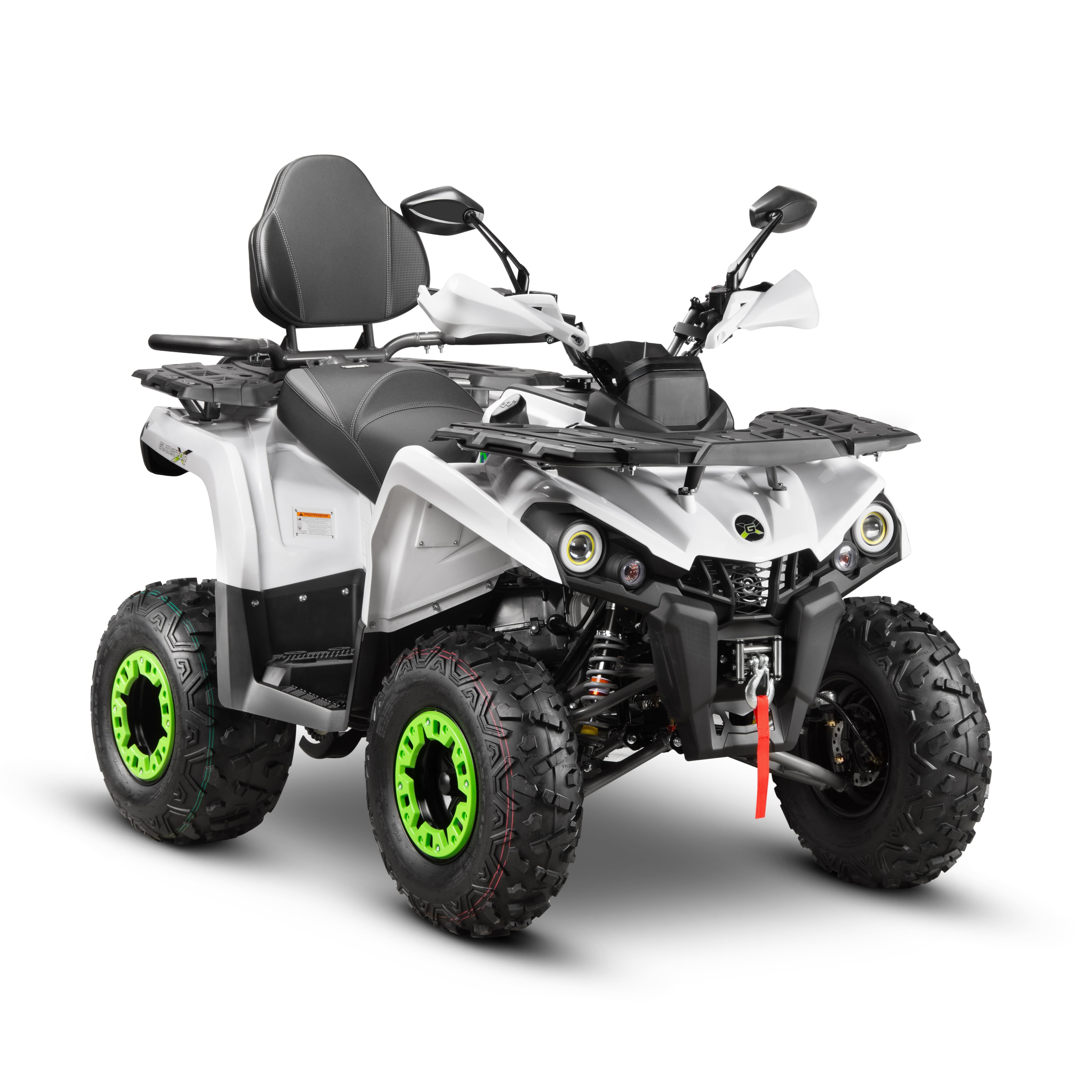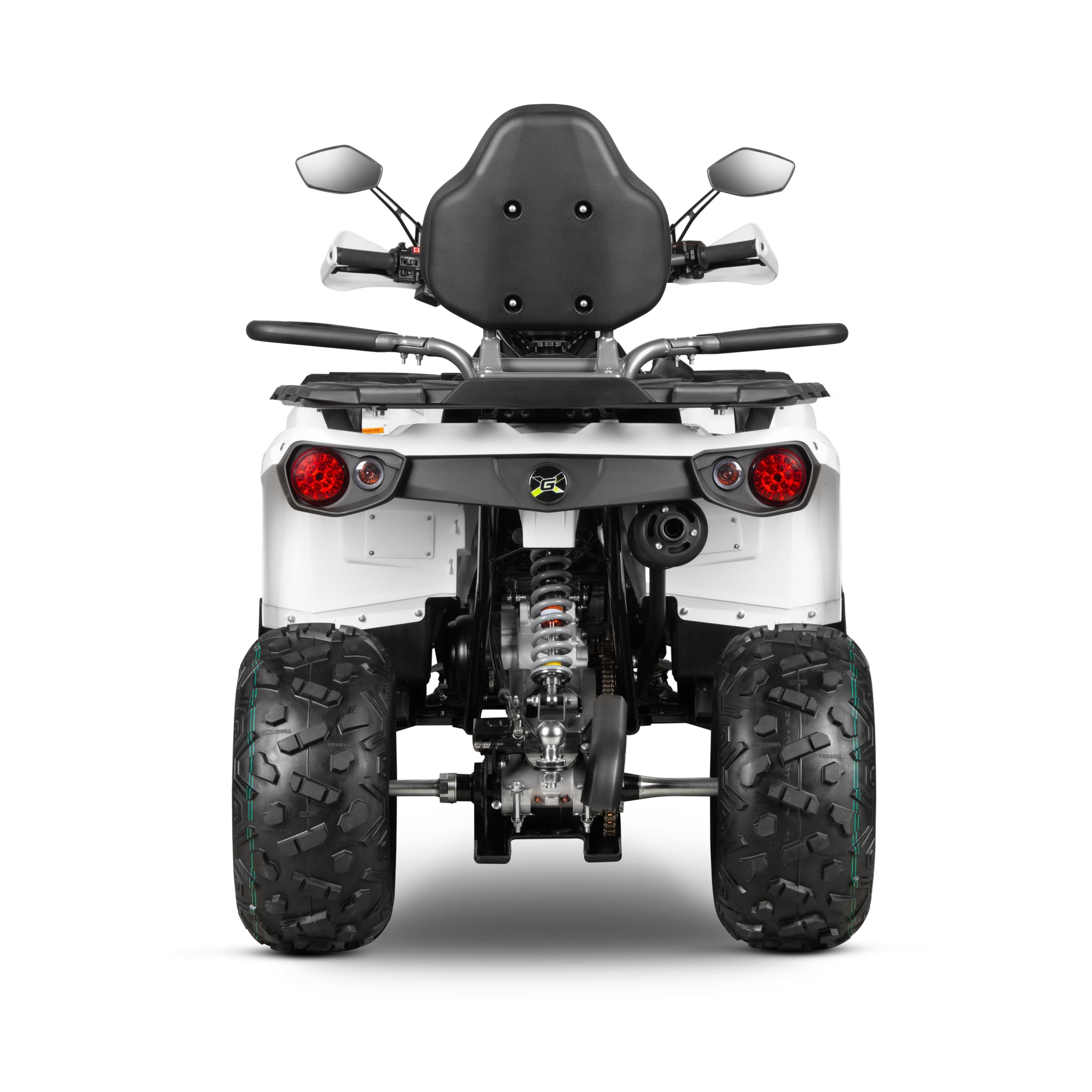 - Комплектация: Фаркоп, Светодиодные противотуманные фары, Звуковой сигнал, Зеркала заднего вида, Поворотники, Передний и задний багажники, Спинка пассажира, Защита рук, Цветной информативный дисплей, USB порт, Электролебедка, Пластиковые накладки на багажники, Бедлоки, Доп. место для второго пассажира