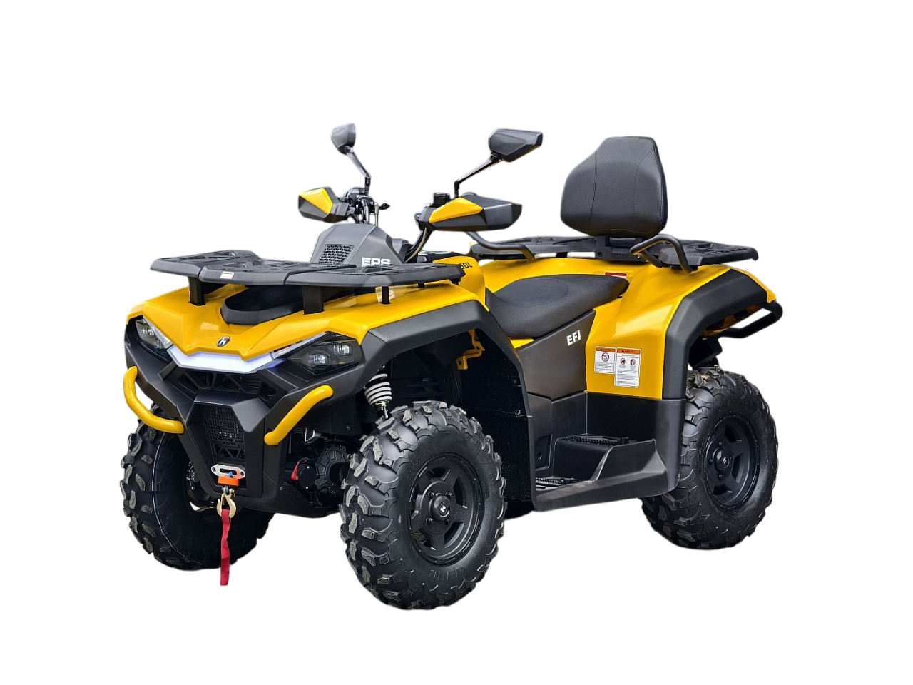 - Комплектация: Лебедка (2500 lbs) с пультом д/у, кевларовый трос, Зеркала, Сиденье со спинкой, Блокировка бензобака, Фаркоп с электроподготовкой, Отсеки для хранения вещей, Электроусилитель руля (EPS), Легкосплавные диски, Светодиодная LED оптика, Защита рук, Передний и задний багажные платформы, Передний и задний силовые бамперы