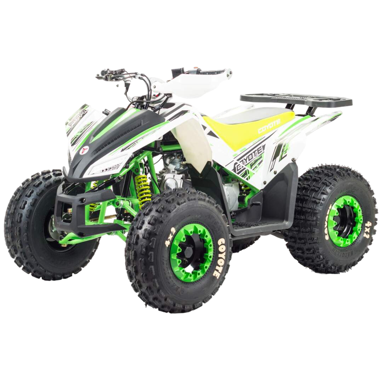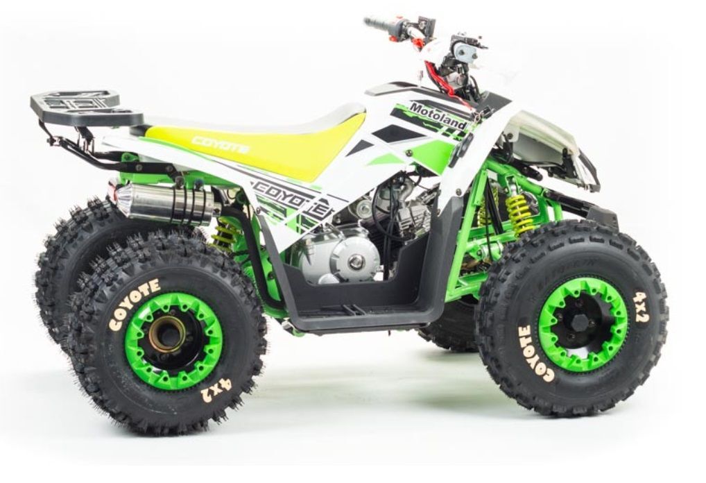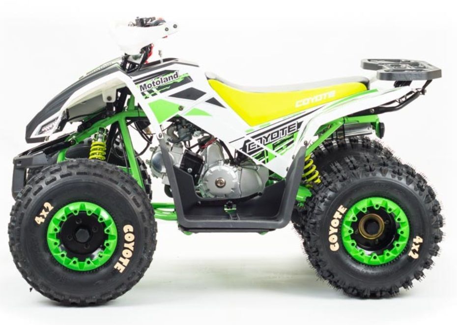 Квадроцикл Motoland 125 COYOTE cтильный, современный, универсальный квадроцикл подойдет вашему ребенку как мальчику, так и девочке. Его утилитарный дизайн разработан с учетом вкусов современного поколения и понравится всем без исключения.