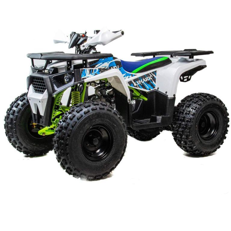 Квадроцикл MotoLand ATV Shark 125 - новинка 2022 года. Техника оснащена двигателем на 125 кубических сантиметров и автоматической трансмиссией.