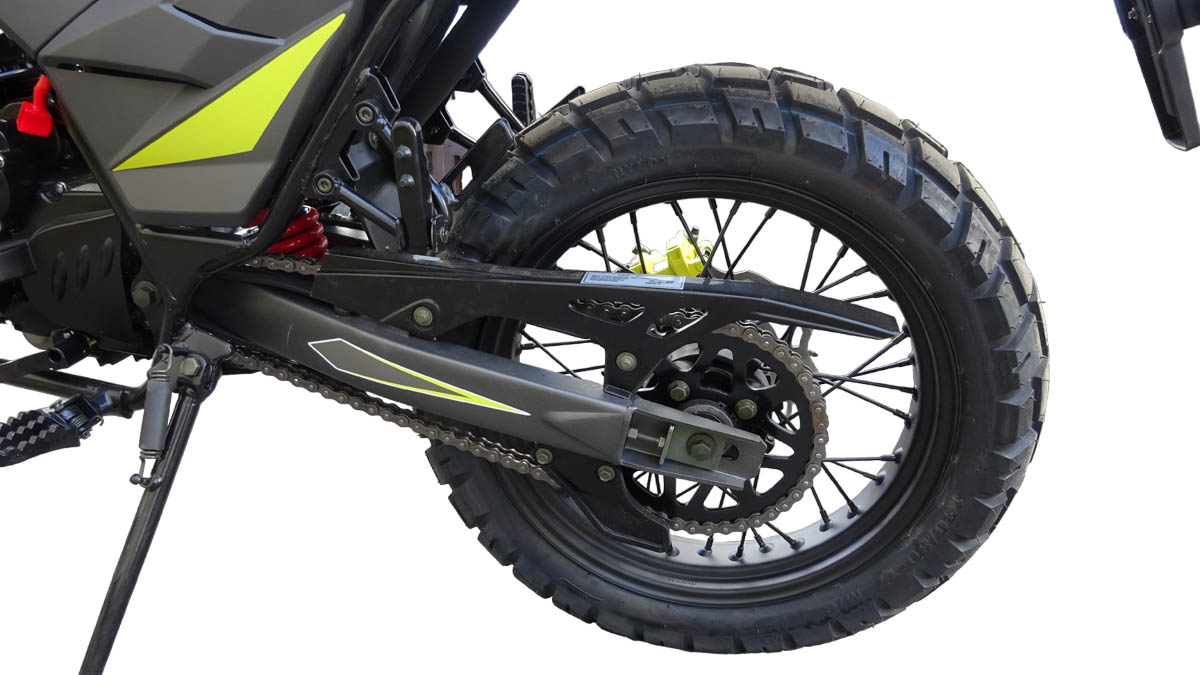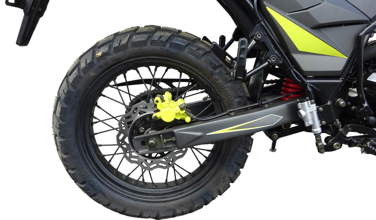 На мотоцикле установлена резина с универсальным рисунком, что позволяет перемещаться не только по твёрдым покрытиям, но и по лёгкому бездорожью. Благодаря передней перевёрнутой вилке и заднему моноамортизатору, подвеска Mirage 250 обеспечивает комфортное вождение как по асфальту, так и по неровным дорогам.
