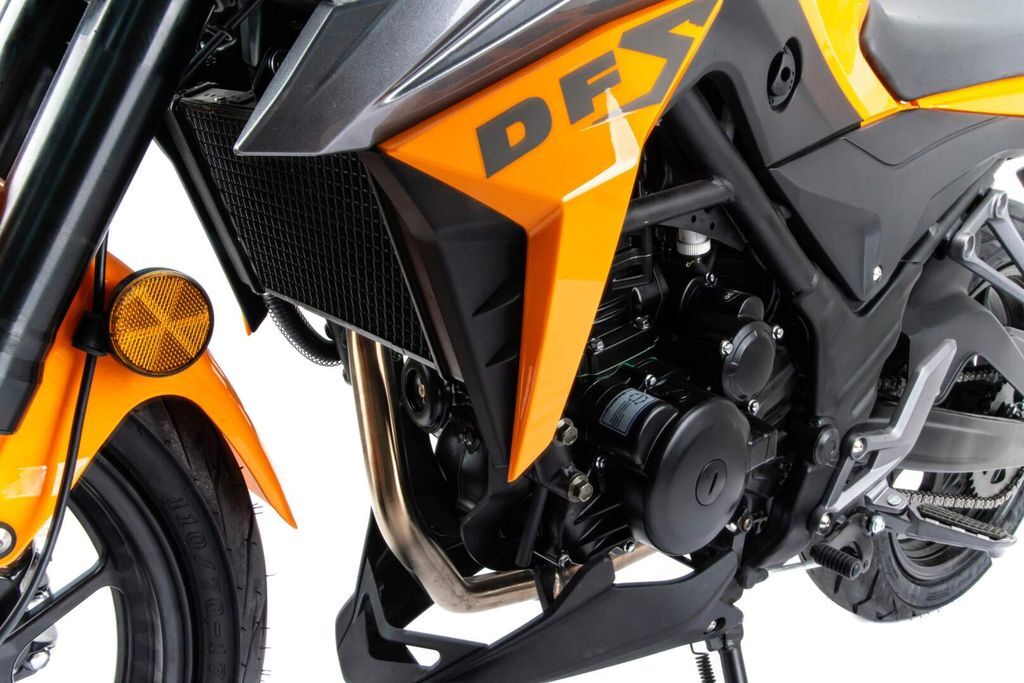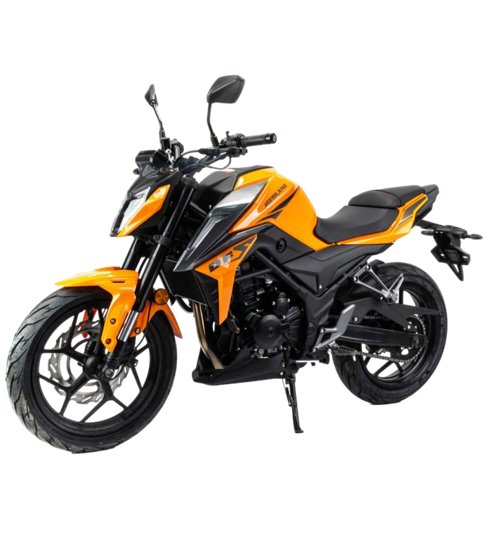 Представляем Вашему вниманию дорожный мотоцикл на шестискоростном двигателе 174 MN (CBS300 с балансиром), с большим радиатором водяного охлаждения, с электростартером, мощностью 24 л.с. На двигателе установлен карбюратор Keihin PE 34 MV.