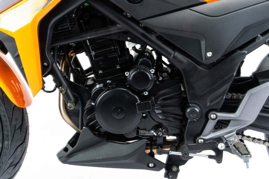 Также на новинке передние и задние тормоза оснащены 4-х поршневыми суппортами, увеличен R переднего тормозного диска литые алюминиевые обода, передняя вилка перевёрнутого типа с большим ходом, которая обеспечивает отличную управляемость для комфортного передвижения.