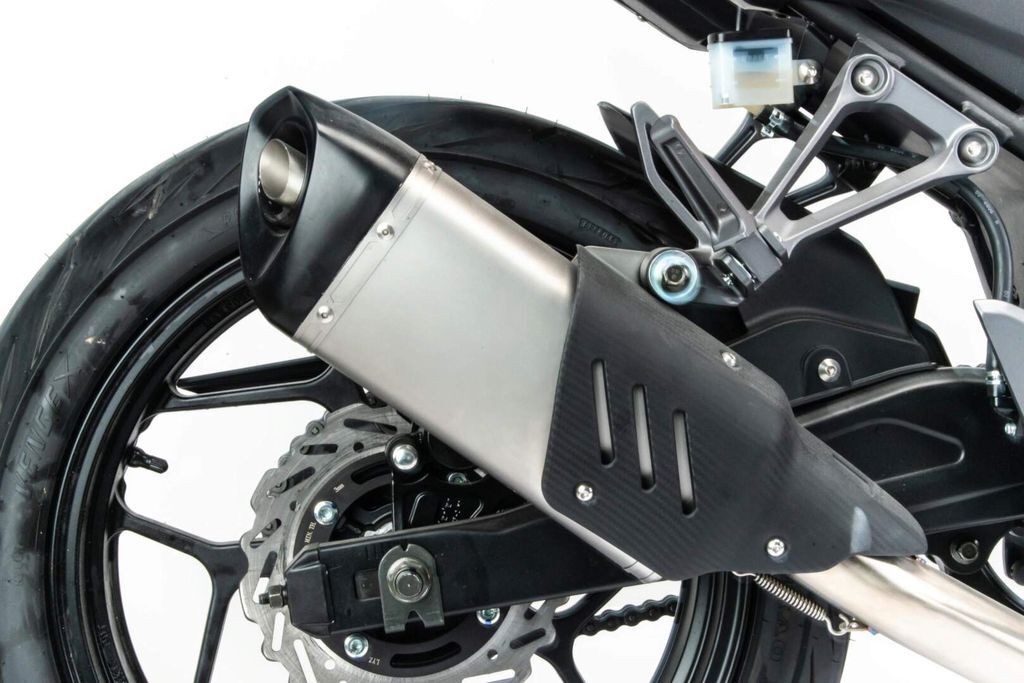 Передние и задние суппорта 4-х поршневые. Глушитель прямоточный Akrapovic с увеличенным диаметром трубы. Руль двойной усиленный переходного сечения.