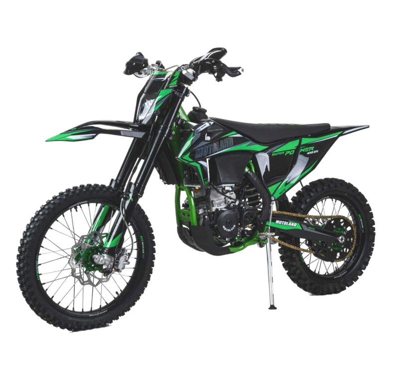 Мотоцикл MotoLand 450 FX450 EFI предназначен для езды по бездорожью и соревнований по мотокроссу. Имеет хорошую проходимость, прекрасно ведёт себя на песке, грунте и подходит для асфальтовых дорог.