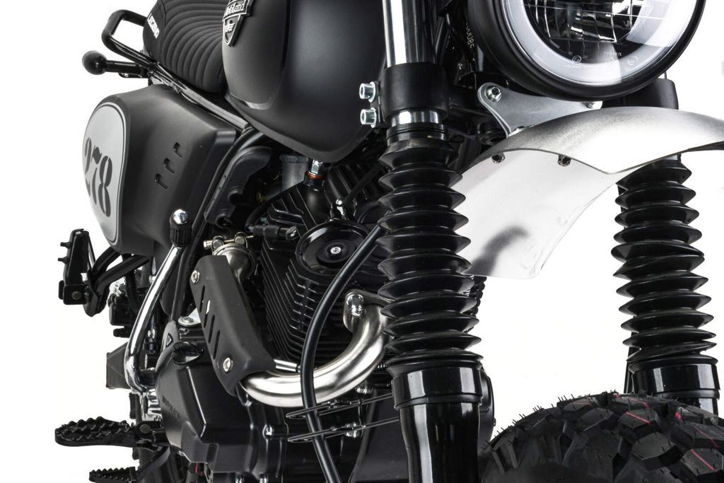 Мотоцикл оснащен двигателем 172FMM-5 (баланс. вал) с 5 ступенчатой коробкой передач, мощностью 21 л.с. или же 15,4 кВт/8800 RPM. Впуск оснащен карбюратором Keihin PZ30, выпуск – титановым выхлопом от Motoland.