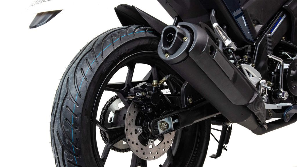 Хорошо подобранные покрышки на 17" ободах, 110/70 и130/70, обеспечивают отличное сцепление с дорожным покрытием.
