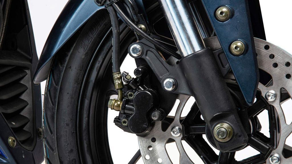 Также на новинке установлены двухпоршневые передние тормоза, литые алюминиевые обода , передняя вилка перевёрнутого типа с большим ходом, которая обеспечивает отличную управляемось для комфортного передвижения, как по городу, так и по бездорожью.