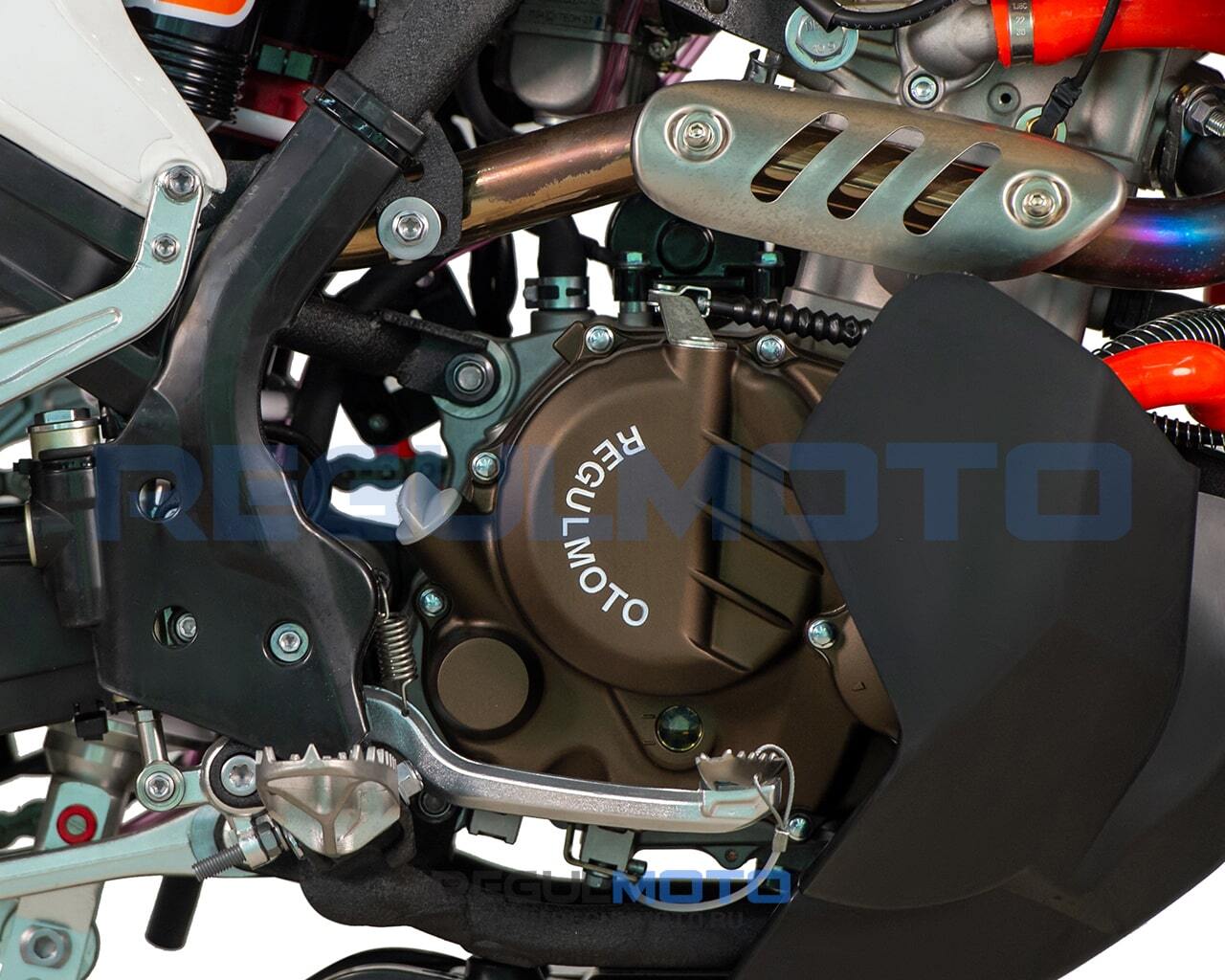 В мощной раме стоит модернизированная версия популярного одноцилиндрового мотоциклетного мотора 174MN-5 (NB300) производства компании Zongshen. Форсированный двигатель с 6-ступенчатой коробкой передач отличают выросший порог максимальной мощности, больший крутящий момент в диапазоне низких оборотов и более производительная система охлаждения. В тракте подготовки топливной смеси работает карбюратор PWK34 производства компании Nibbi Racing. Среди других особенностей подбора компонентов Regulmoto Crosstrec 300 необходимо отметить: