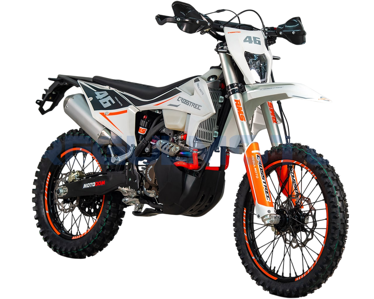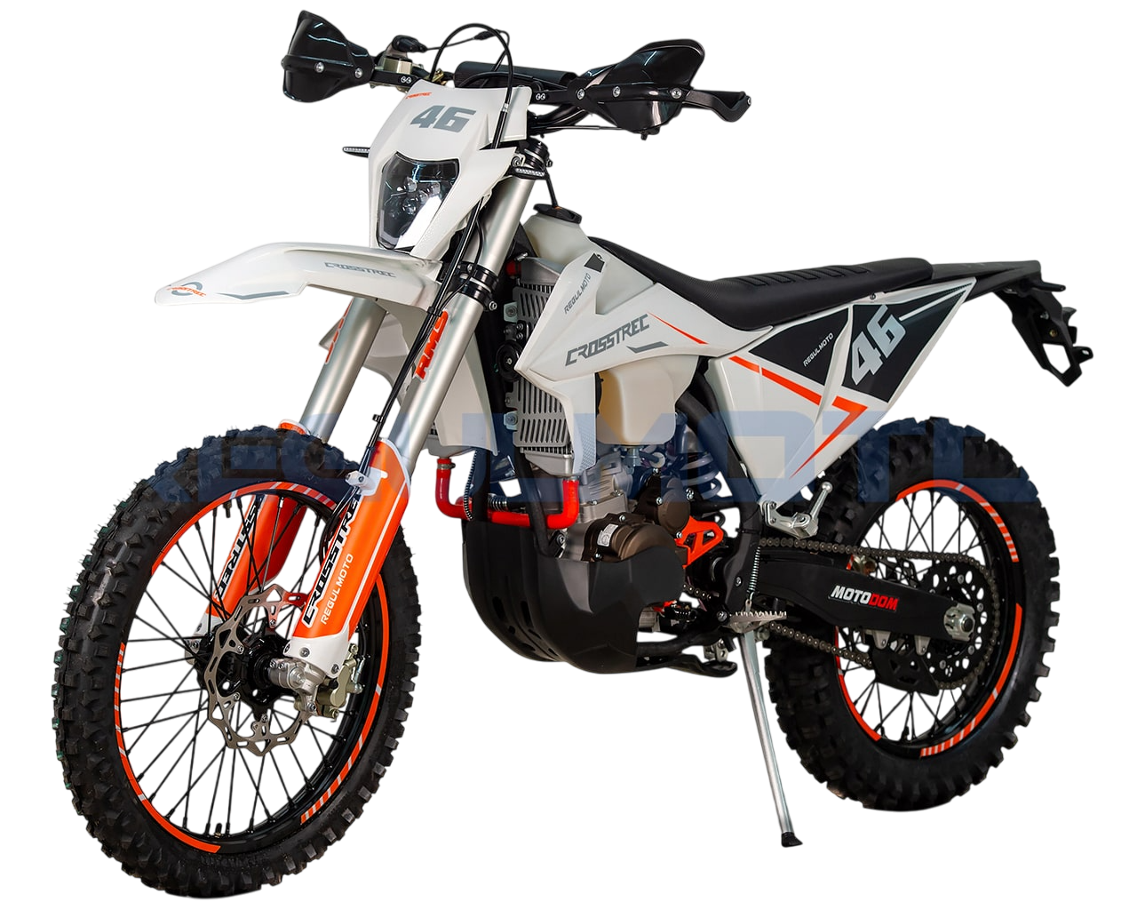 Regulmoto Crosstrec 300 – новый мотоцикл в ряду мототехники Regulmoto, представляющий класс «dualsport», востребованный у отечественных поклонников двухколесного транспорта. Данный эндуро-байк отличают достаточно мощный форсированный двигатель и широкие возможности использования, благодаря наличию у мотоцикла паспорта транспортного средства и установленного в стоке оборудования, необходимого для передвижения по дорогам общего пользования.