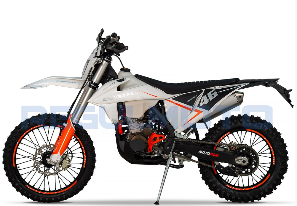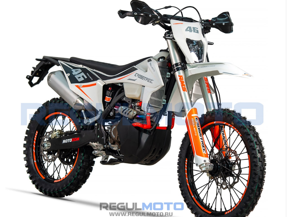 Regulmoto Crosstrec 300 – новый мотоцикл в ряду мототехники Regulmoto, представляющий класс «dualsport», востребованный у отечественных поклонников двухколесного транспорта. Данный эндуро-байк отличают достаточно мощный форсированный двигатель и широкие возможности использования, благодаря наличию у мотоцикла паспорта транспортного средства и установленного в стоке оборудования, необходимого для передвижения по дорогам общего пользования.