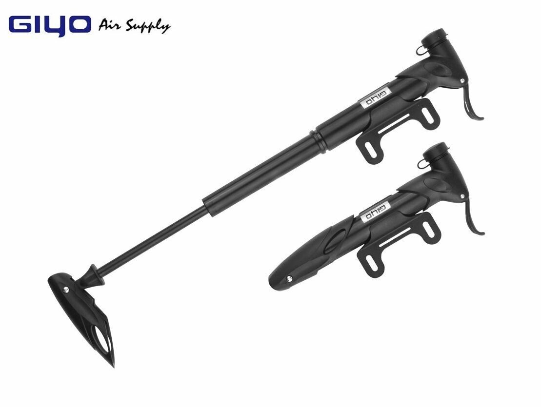 Насос GIYO ручной, под ниппель AV/FV, Т-образная ручка, телескопический, max 80 psi/5 bar, 21см, пластик, черный