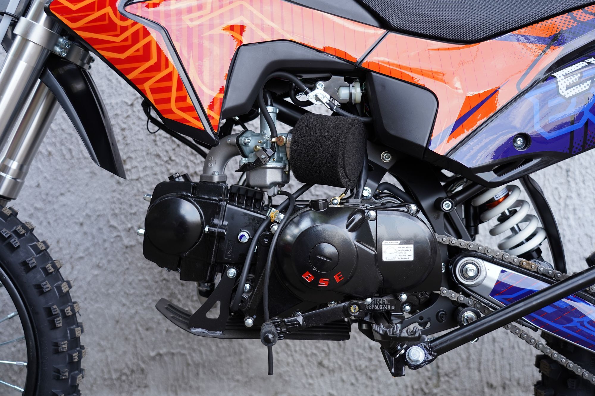 EX - лидер в классе питбайки! Построен на шасси проверенного и надежного DX125 и оснащен самым необходимым для активного катания: мощный 4-х тактный двигатель Zonghshen с воздушным охлаждением, прочная стальная рама, электростартер и диодная фара головного света! Карбюратор Jingke PZ 26 прост в настройке и обслуживании. Энергоемкая подвеска справляется с любыми неровностями. Мощная гидравлическая тормозная система для эффективного и прогнозируемого торможения. Яркий, современный.