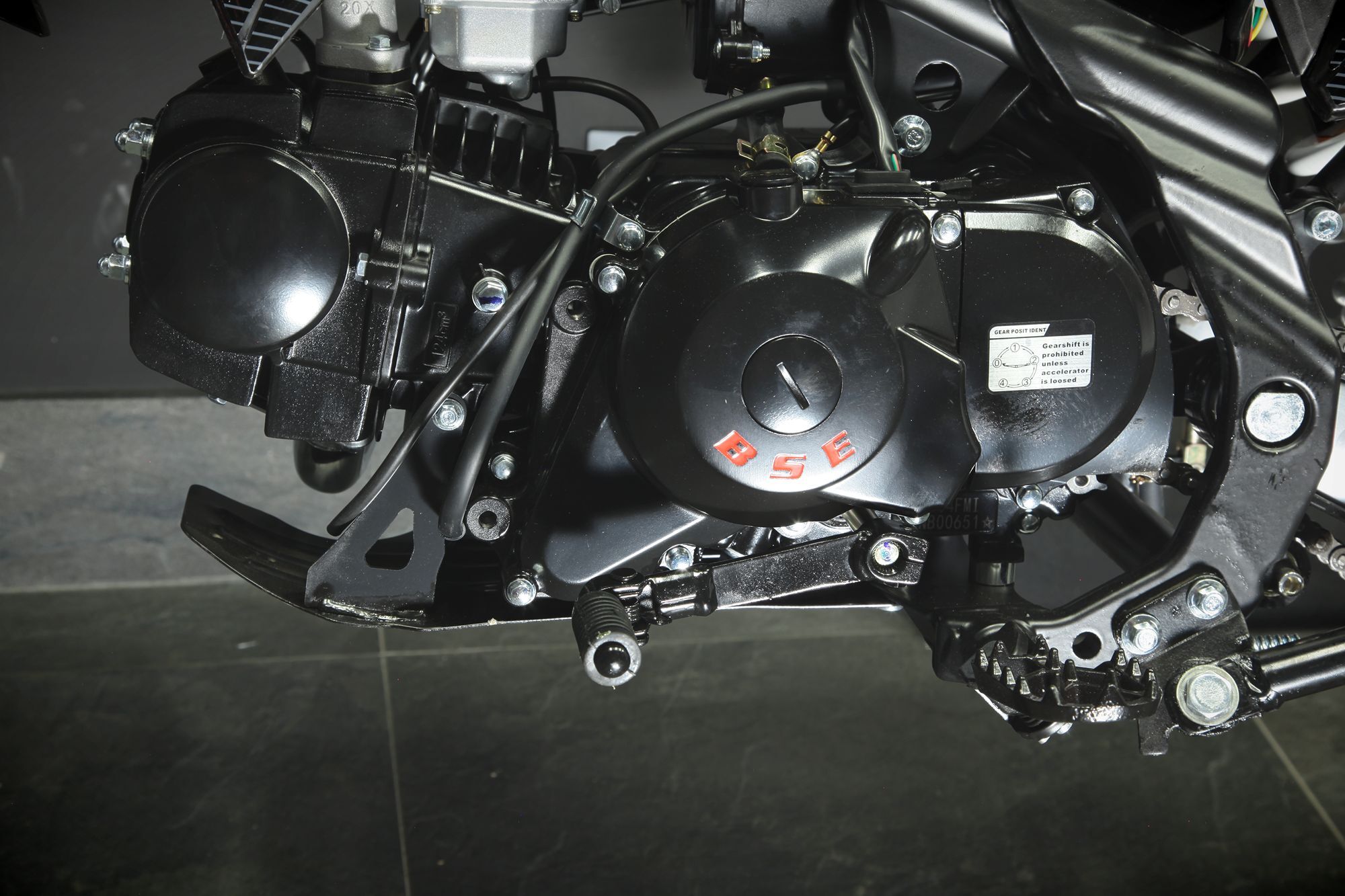 Питбайк BSE PH125 на колесах 17/14 дюймов – один из самых популярных, надежных и продаваемых питбайков 125 куб см среди китайских производителей! Этот классический питбайк объёмом 125 см3 обладает рядом модификаций и полезных усовершенствований, которые дополняют его функционал и отличают от конкурентов. PH125 оснащен колесами классическим для питбайка размером колес 17/14. Основа PH125 - рама из хромомолибденовой стали повышенной жесткости с литыми усилителями - фирменный знак качества завода BOSUER! Cиловая установка питбайка – надежный, тяговитый и мощный 4-тактный двигатель Zonghshen 125 куб см с воздушным охлаждением и мощностью 10 лс. Питает мотор карбюратор Jingke PZ 26. Питбайк оснащен 4-ступенчатой механической трансмиссией. Запуск мотора осуществляется при помощи электростартера или кик-стартера. Подвески с большими ходами: передняя - телескопическая вилка перевёрнуто типа, задняя- моноамортизатор. "Злая" резина, Мощная тормозная система HSK Racing, японские колесные подшипники NTN, усиленная цепь 428 Gold, защита мотора - питбайк полностью укомплектован всем необходимым для покатушек и гонок.