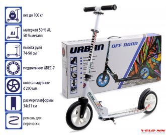 Самокат 2-х колесный Slider, надувные колеса , белый
