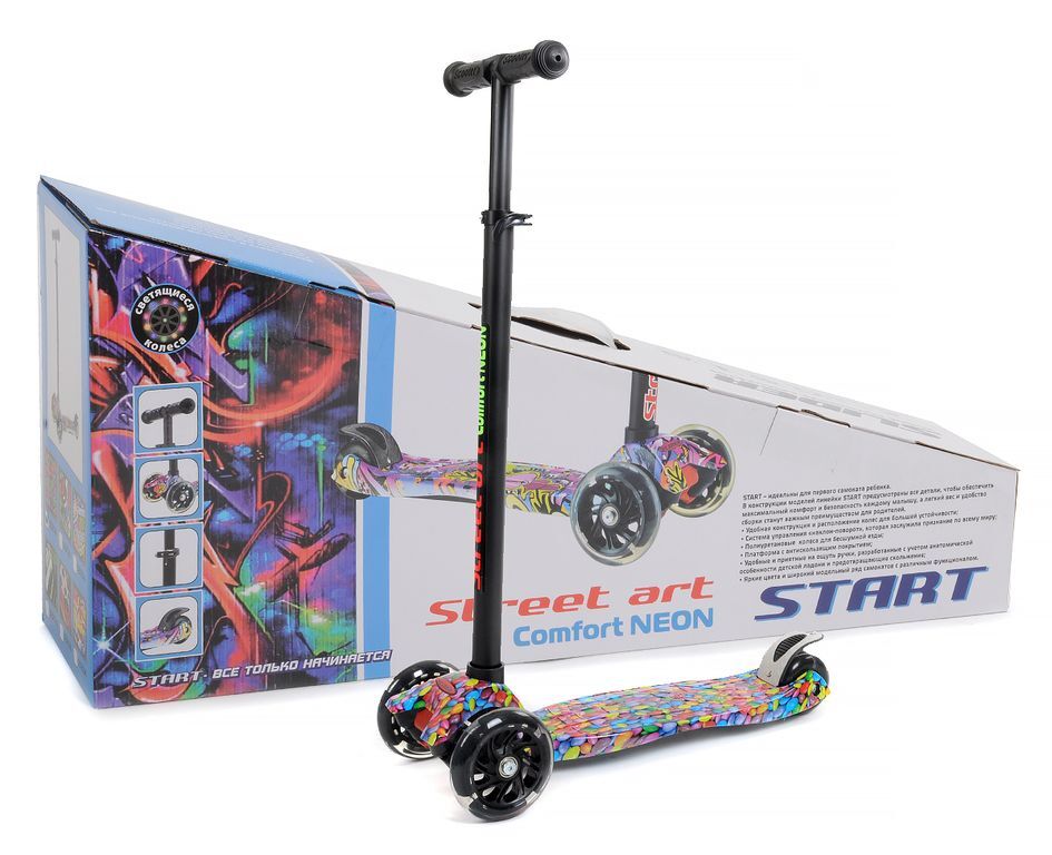 Четырехколесный самокат Slider Start ComfortNeon SS2N стильный, яркий и эффектный, со светящимися колёсами не оставит равнодушным ни одного ребёнка. Предназначен для катания по твердым покрытиям без значительных неровностей. Колеса силиконовые, что делает передвижение мягким, тихим и приятным. Самокат лёгкий, манёвренный, простой конструкции и безопасный для катания, управляется наклоном. Рукоятки руля оснащены удобными мягкими грипсами, для обеспечения надежного и удобного захвата. Широкая платформа для ног, эффективный ножной тормоз, по два колеса спереди и сзади, что делает его очень устойчивым.