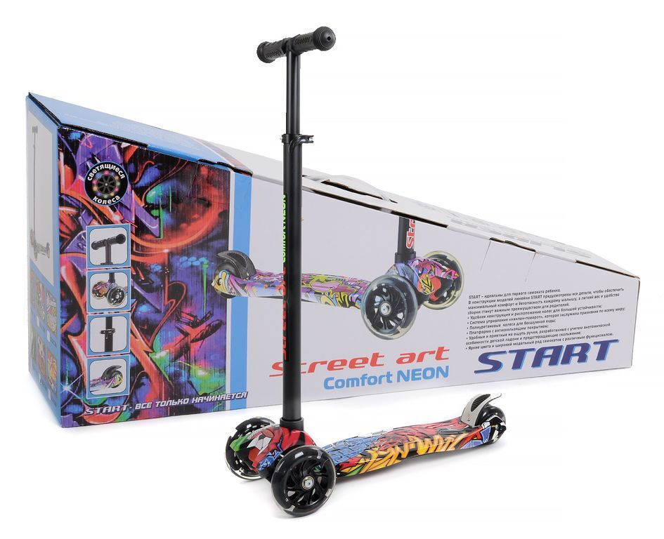 Четырехколесный самокат Slider Start ComfortNeon SS2N стильный, яркий и эффектный, со светящимися колёсами не оставит равнодушным ни одного ребёнка. Предназначен для катания по твердым покрытиям без значительных неровностей. Колеса силиконовые, что делает передвижение мягким, тихим и приятным. Самокат лёгкий, манёвренный, простой конструкции и безопасный для катания, управляется наклоном. Рукоятки руля оснащены удобными мягкими грипсами, для обеспечения надежного и удобного захвата. Широкая платформа для ног, эффективный ножной тормоз, по два колеса спереди и сзади, что делает его очень устойчивым.