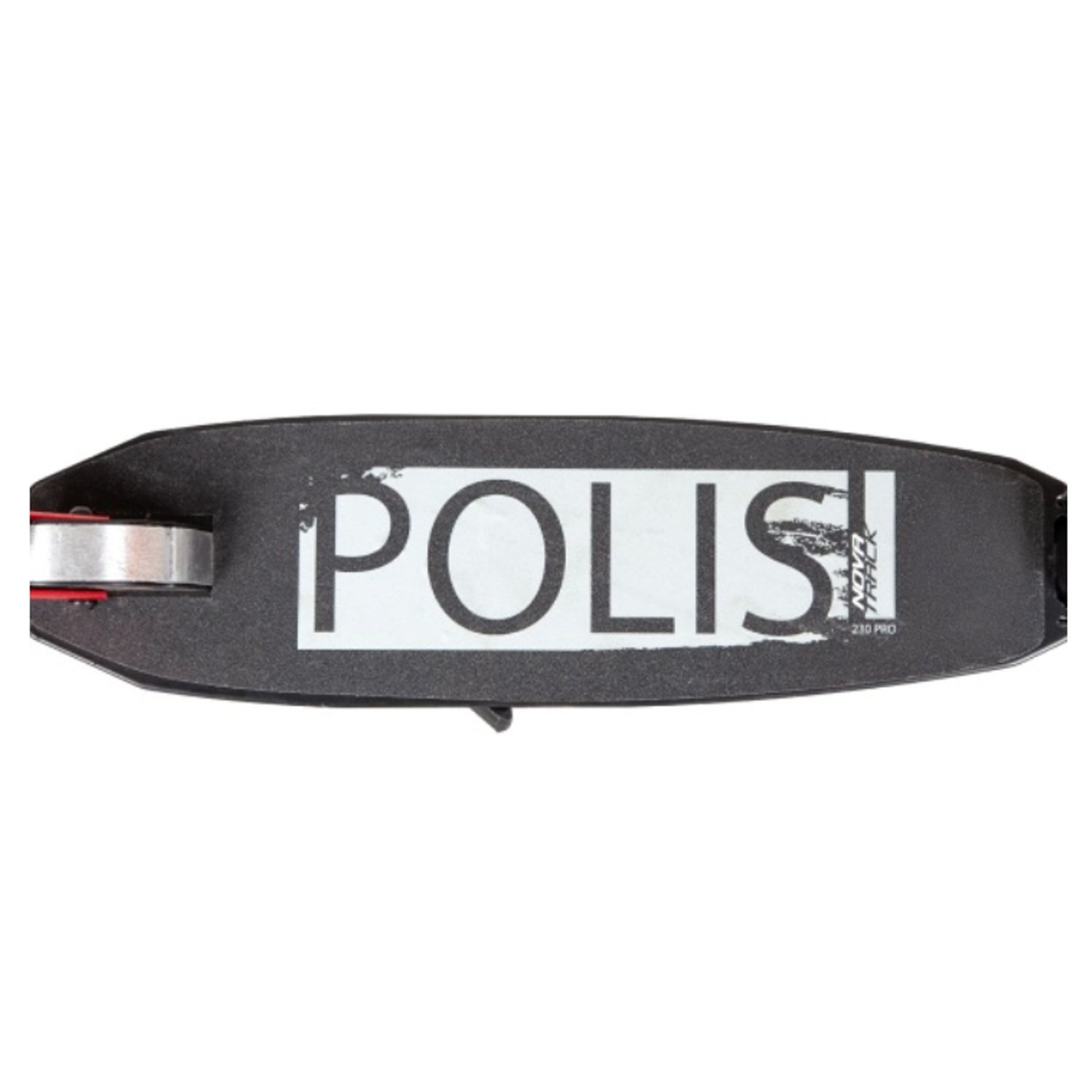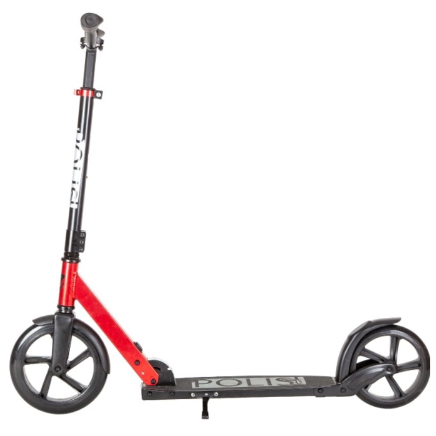 Novatrack POLIS 230 PRO - надежный самокат на больших полиуретановых колёсах размером 230мм и 200мм. Большие колеса хорошо сглаживают все неровности на вашем пути и обеспечивают комфорт передвижения и хороший накат. Заниженная платформа с антискользящим покрытием способна выдерживать нагрузку до 100кг, позволяя активно и безопасно кататься как ребенку, так и взрослому. Система складывания самоката с помощью одной кнопки очень проста, безопасна и препятствует случайному открытию механизма во время езды.