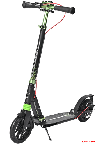 "Изюминка" модели - ручной дисковый тормоз, позволяющий не только выполнять эффективное торможение, но и по настоящему украшающий самокат. Тросик тормоза, в отличие от многих аналогов, проведен через специальные каналы в рулевой стойке и деке и не мешает езде.