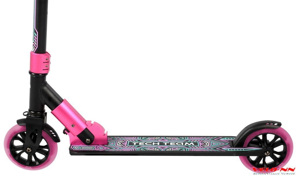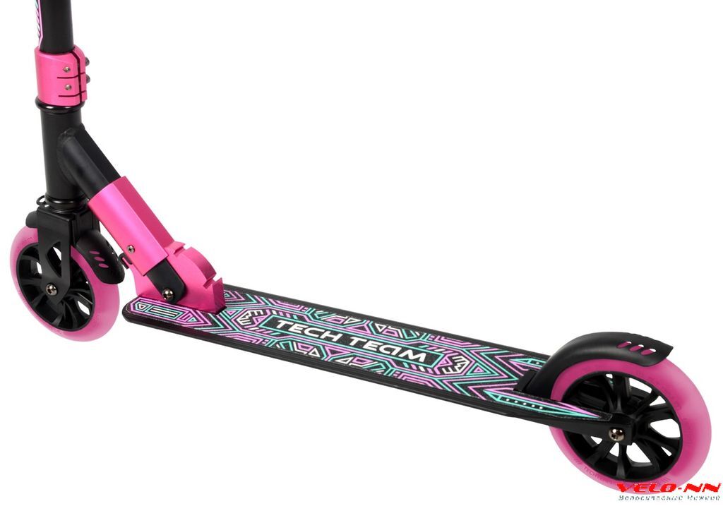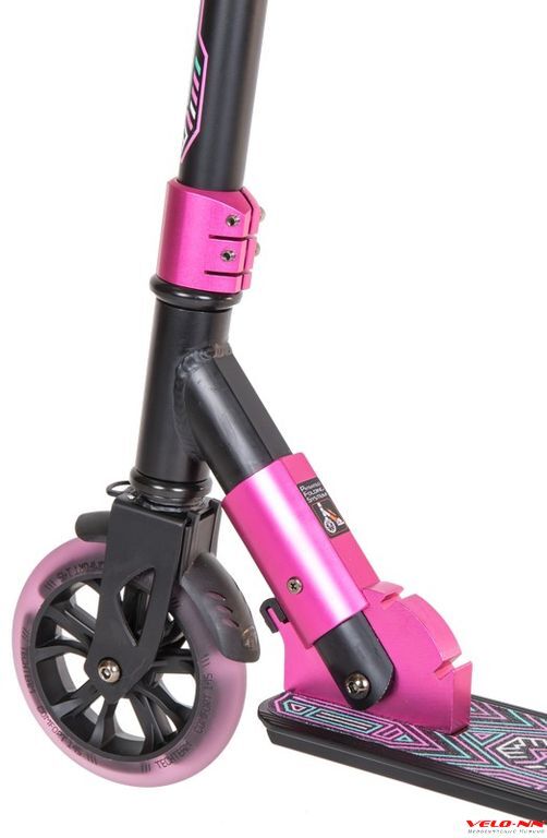 Дека самоката изготовлена из алюминиевого сплава, длина деки - 53 см, ширина - 10,5 см, пространство для ног - 33 см, клиренс - 6 см, высота деки - 8,5 см. Задний металлический тормоз-крыло с усиленной пружиной.