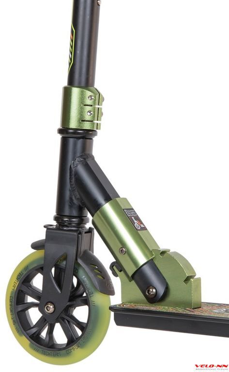 Дека самоката изготовлена из алюминиевого сплава, длина деки - 53 см, ширина - 10,5 см, пространство для ног - 33 см, клиренс - 6 см, высота деки - 8,5 см. Задний металлический тормоз-крыло с усиленной пружиной.