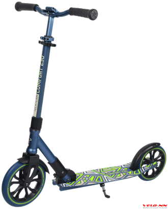 Дека длиной 58 см и шириной 15 см имеет футспейс 33 см, достаточный для размещения обеих ступней. Торможение осуществляется алюминиевым тормозом-крылом. Складывающаяся подножка позволит комфортно припарковать самокат на время отдыха.