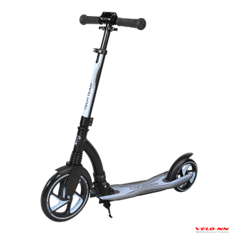 Широкая алюминиевая дека (от 13 до 15 см) обладает необходимым запасом прочности и позволяет размещать сразу две ноги, предоставляя самокатчику возможность отдыха (длина деки 56 см, footspace - рабочая часть деки - 33 см). Материал покрытия деки - шкурка, обеспечивающая надежный контакт с поверхностью.