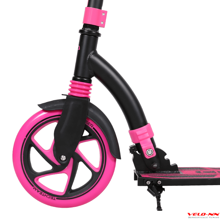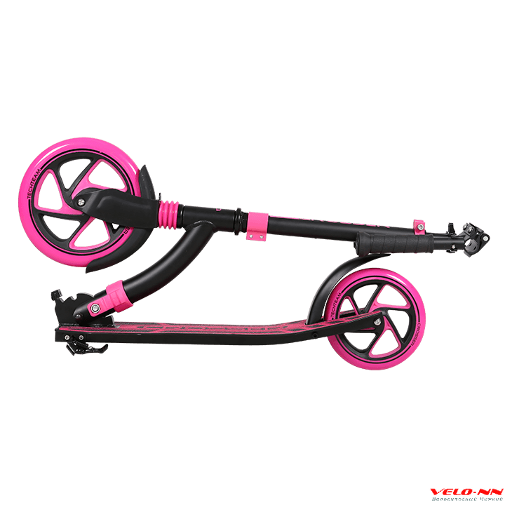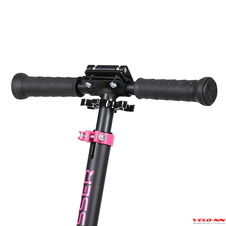 Система складывания выполнена технологии Pull&Fold, не требующей постоянной регулировки и подтягивания и позволяющей складывать самокат одним движением..