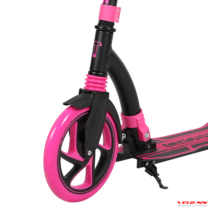 Самокат представлен в двух цветовых решениях - черно-зеленом и черно-розовом.