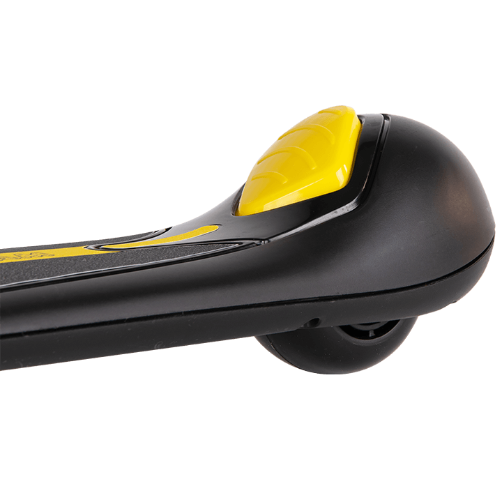 Система складывания самоката и регулировки руля исключают защемление пальцев, Поворотный механизм закрыт резиновыми кожухами, а заднее колесо утоплено в корпус деки, при этом торможение осуществляется нажатием кнопки сверху.