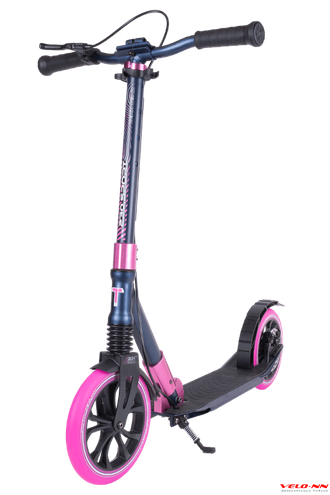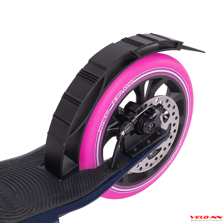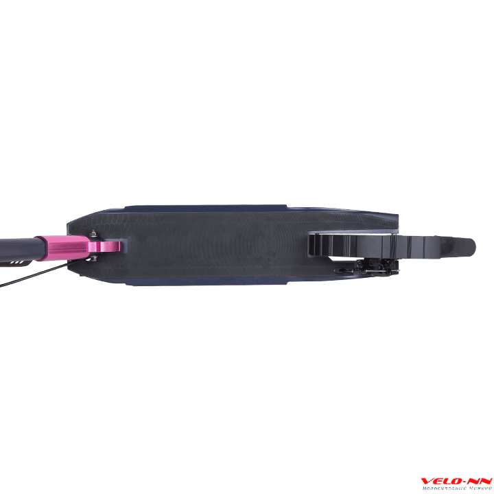 Широкая алюминиевая дека (15 см) обладает необходимым запасом прочности и позволяет размещать сразу две ноги, предоставляя самокатчику возможность отдыха (длина деки 61 см, "footspace" - рабочая часть деки - 34 см). Материал покрытия деки - износостойкая резина, обеспечивающая легкий уход за поверхностью. Для удобства дека оснащена складывающейся подножкой.