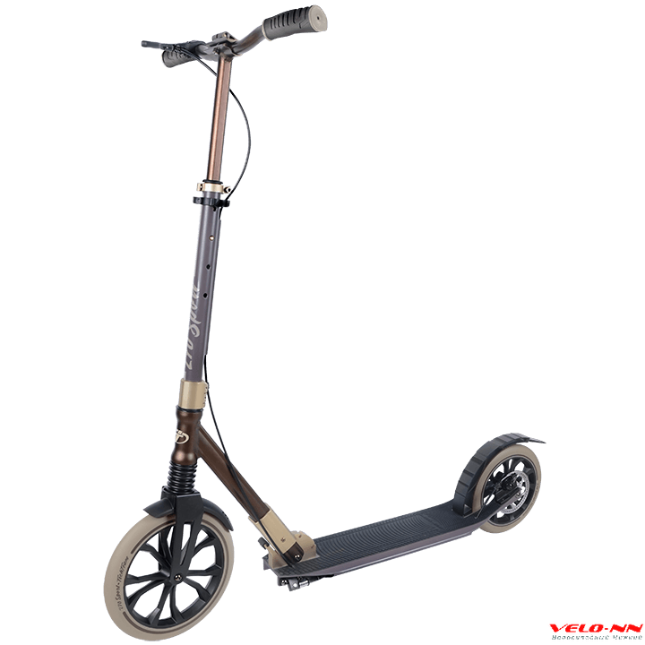 Самокат представлен в двух цветовых решениях - черном и коричневом.