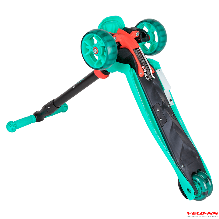 Светодиодная подсветка деки включается кнопкой в ее нижней части, этой же кнопкой производится смена режимов работы подсветки (11 режимов). Используются светодиоды красного, зеленого и синего свечения. Для работы используется встроенный аккумулятор. Подзарядка осуществляется с помощью USB-кабеля идущего в комплекте с самокатом. Подсветка колес не требует подзаряда, запускается при движении, свечение проходит сквозь полупрозрачный полипропилен и ребенок его видит.