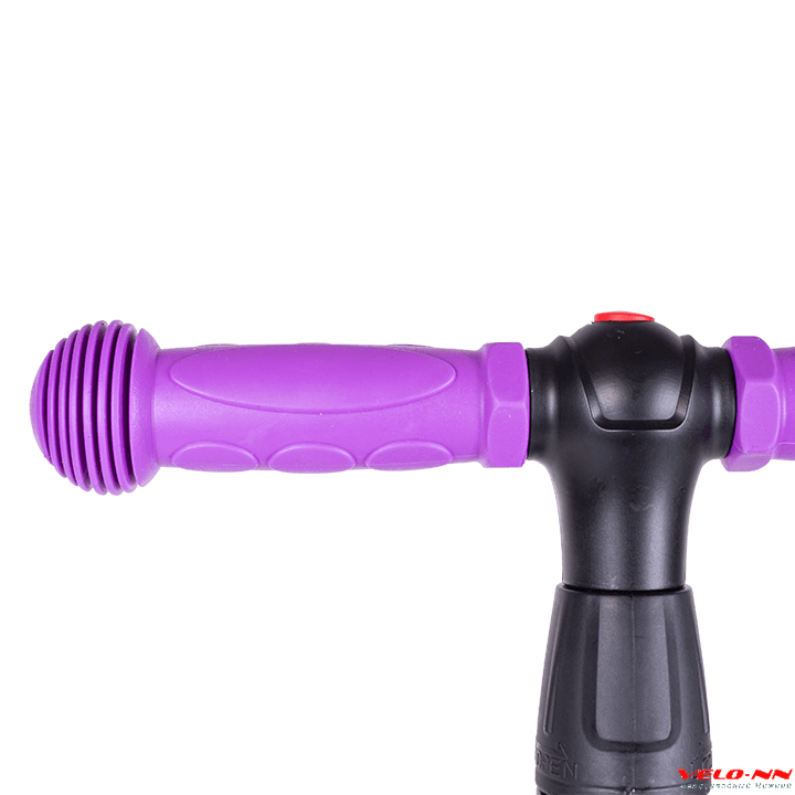 Высота телескопического руля самоката регулируется в широком диапазоне - от 66 до 83 см, причем это можно делать не только в трех стандартных положениях - поворотный зажим руля позволяет надежно его фиксировать на любой удобной высоте. Мягкие ручки самоката сделаны с учетом особенностей детской кисти.
