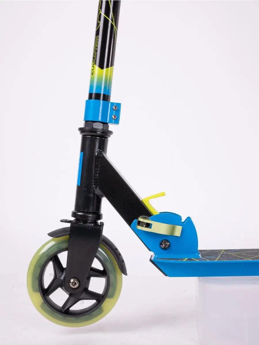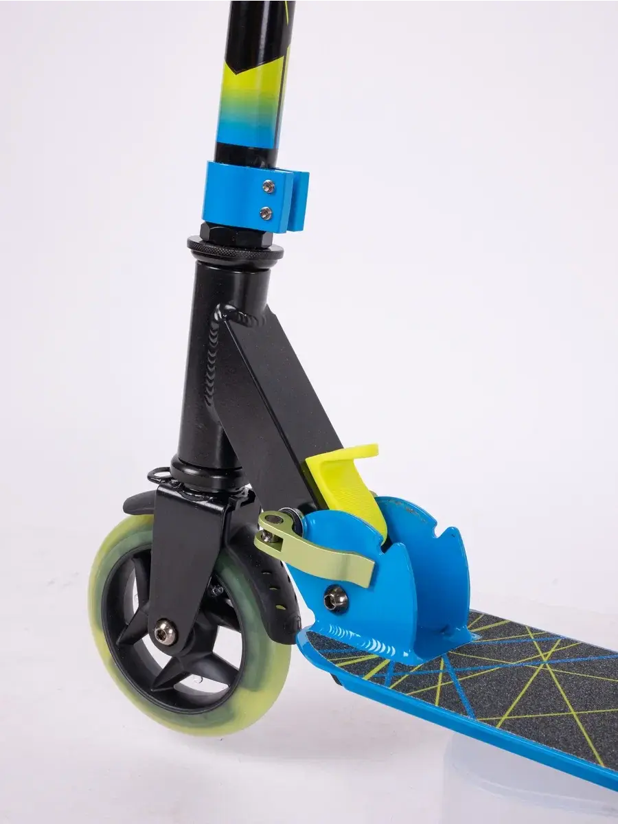 Система складывания самоката выполнена по привычной классической схеме и обеспечивает удобную транспортировку, быстрое складывание/раскладывание и хранение изделия.