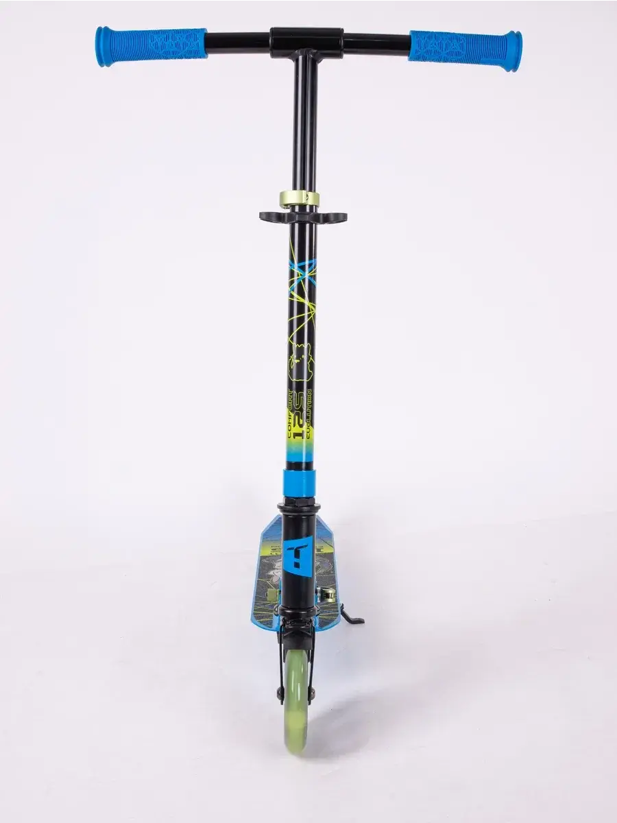 Колеса самоката выполнены из высококачественного прозрачного полиуретана, имеют диаметр 125 мм и ширину 24 мм. Детей порадует двойная встроенная светодиодная подсветка, выполненная как внутри полиуретана так и на диске колес.