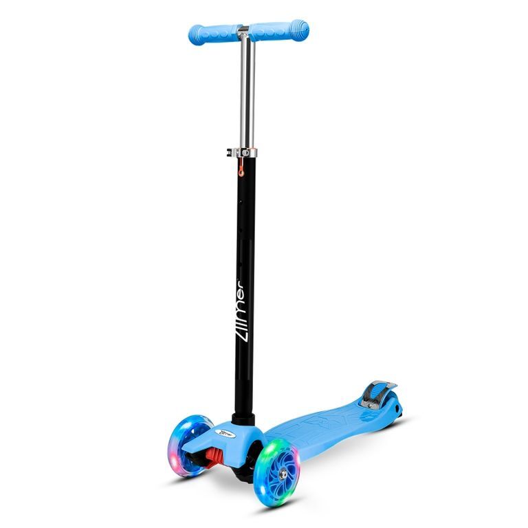 Самокат Zilmer "ZR-90", колеса светятся, голубой
