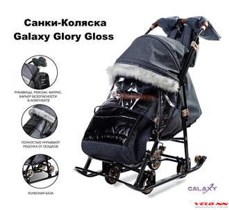 САНКИ-КОЛЯСКА GALAXY GLORY GLOSS черный лен